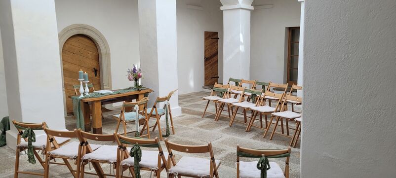 Der attraktive Gewölberaum bietet Platz für Eheschließungen mit 15 - 20 Gästen.